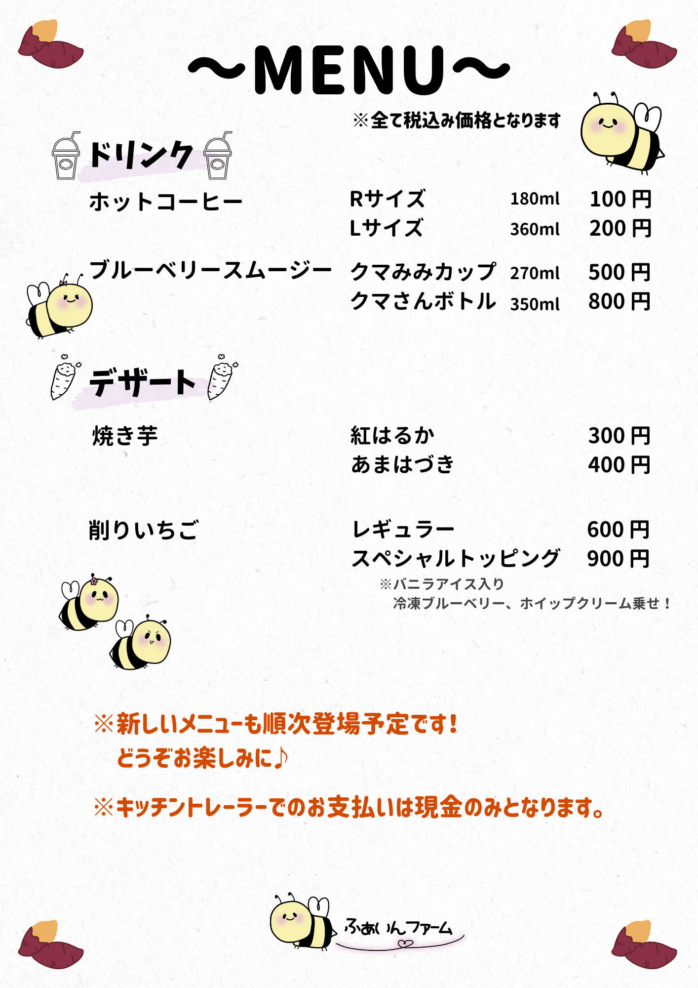 ※キッチントレーラーでのお支払いは現金のみとなります。